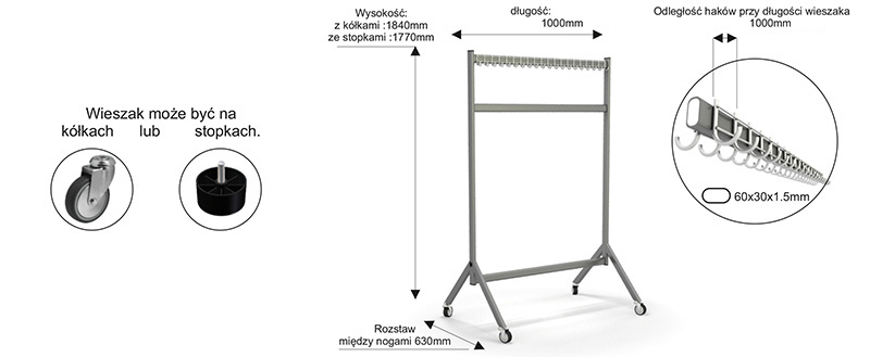 - wysokość: 184 cm (z kółkam), 177 cm (na stopkach)