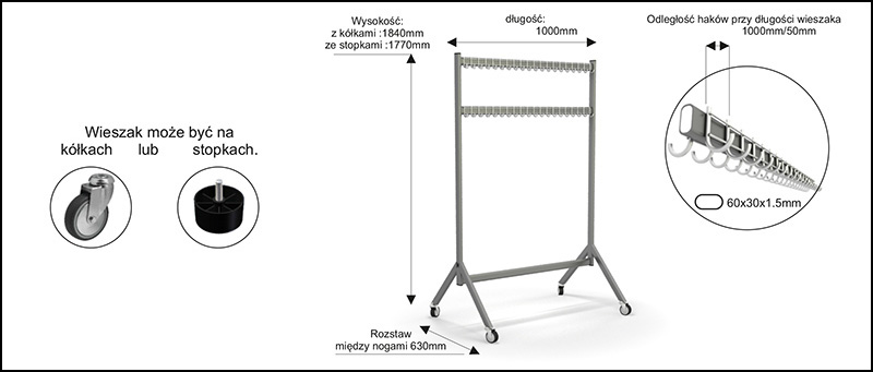 - wysokość: 184 cm (z kółkam), 177 cm (na stopkach)