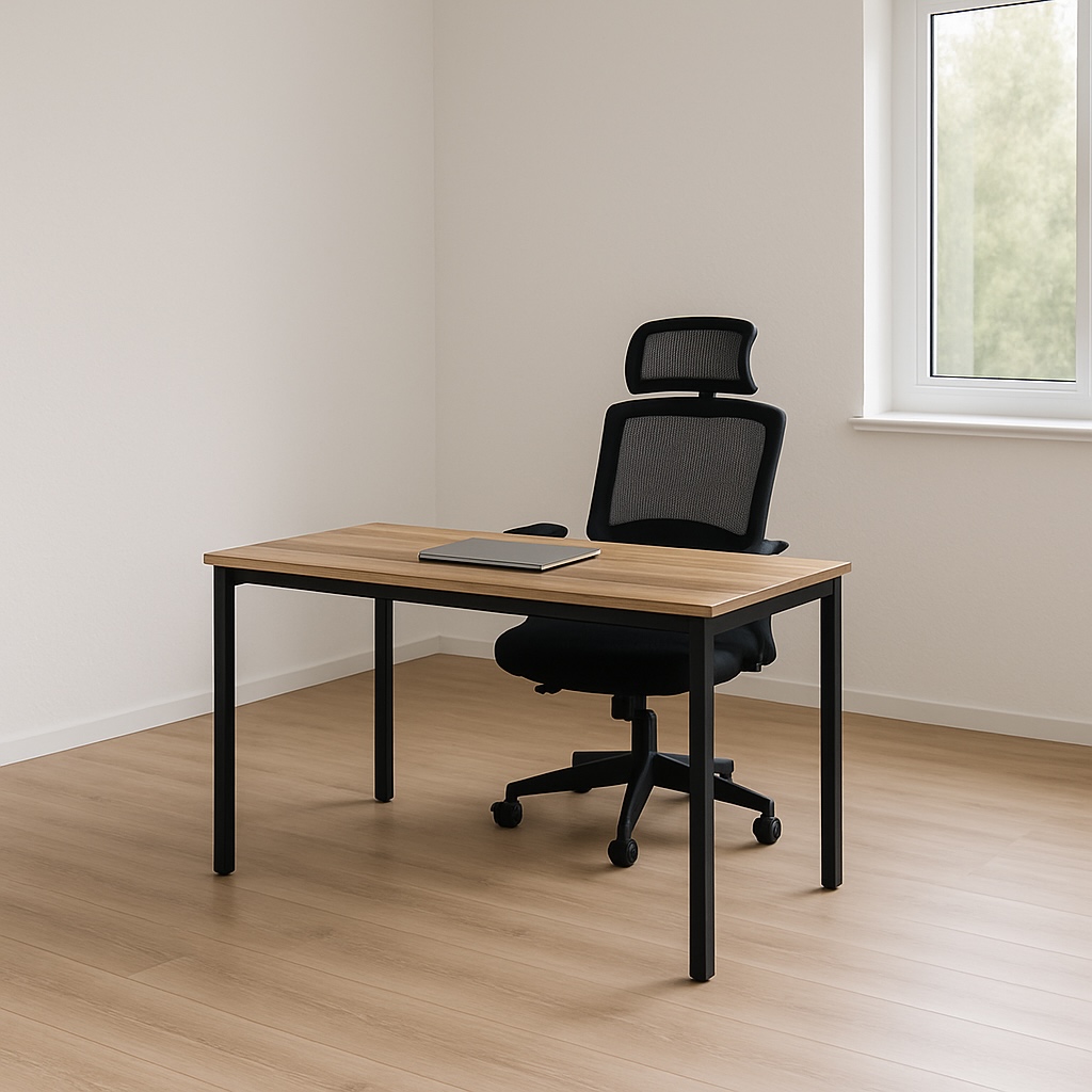 - stelaż biurka: malowany proszkowo w postaci nóg metalowych kwadratowych o profilu 50×50 mm z regulowanymi stopkami