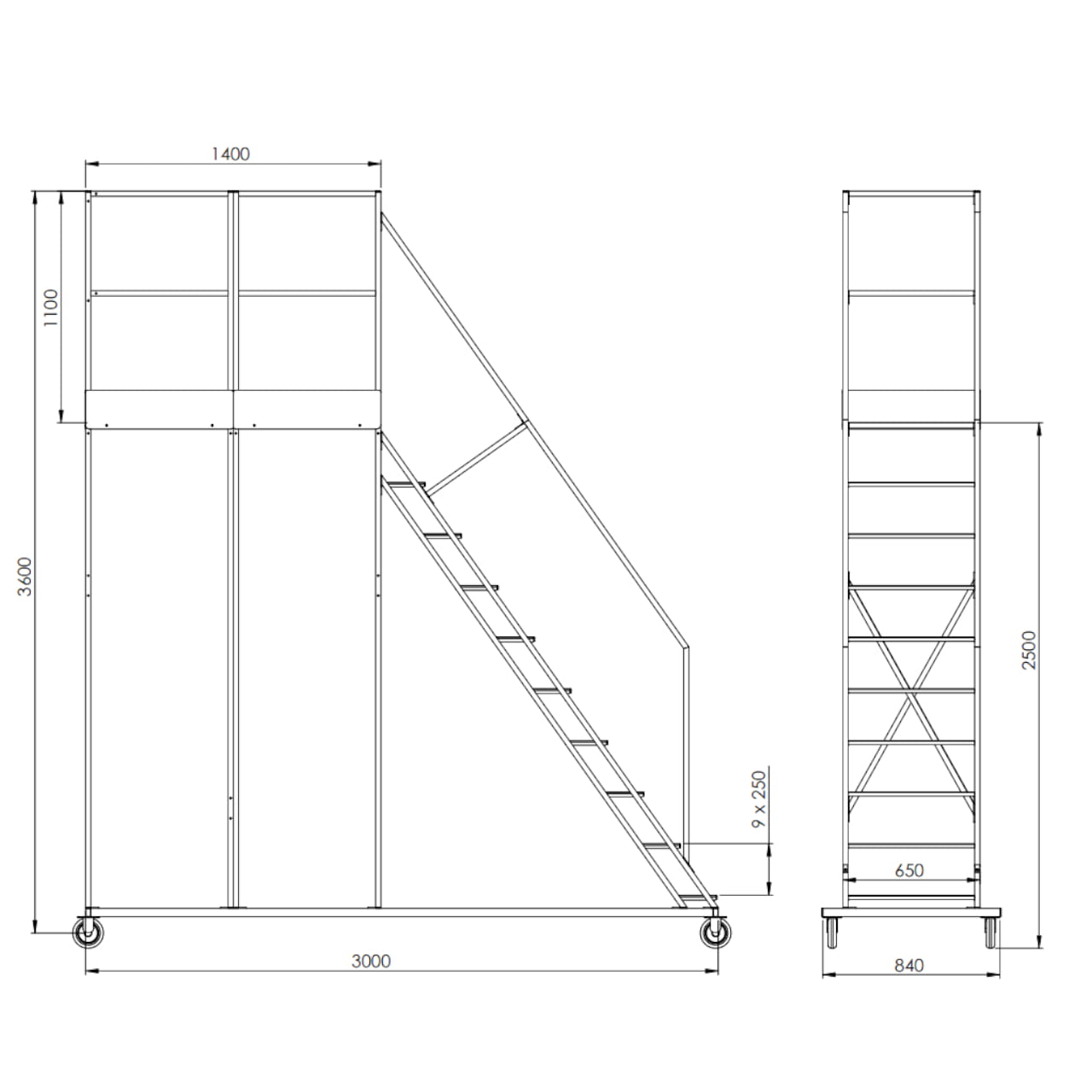 Platforma jezdna z podestem 140 cm DJ2500L140 9+1 2,5m