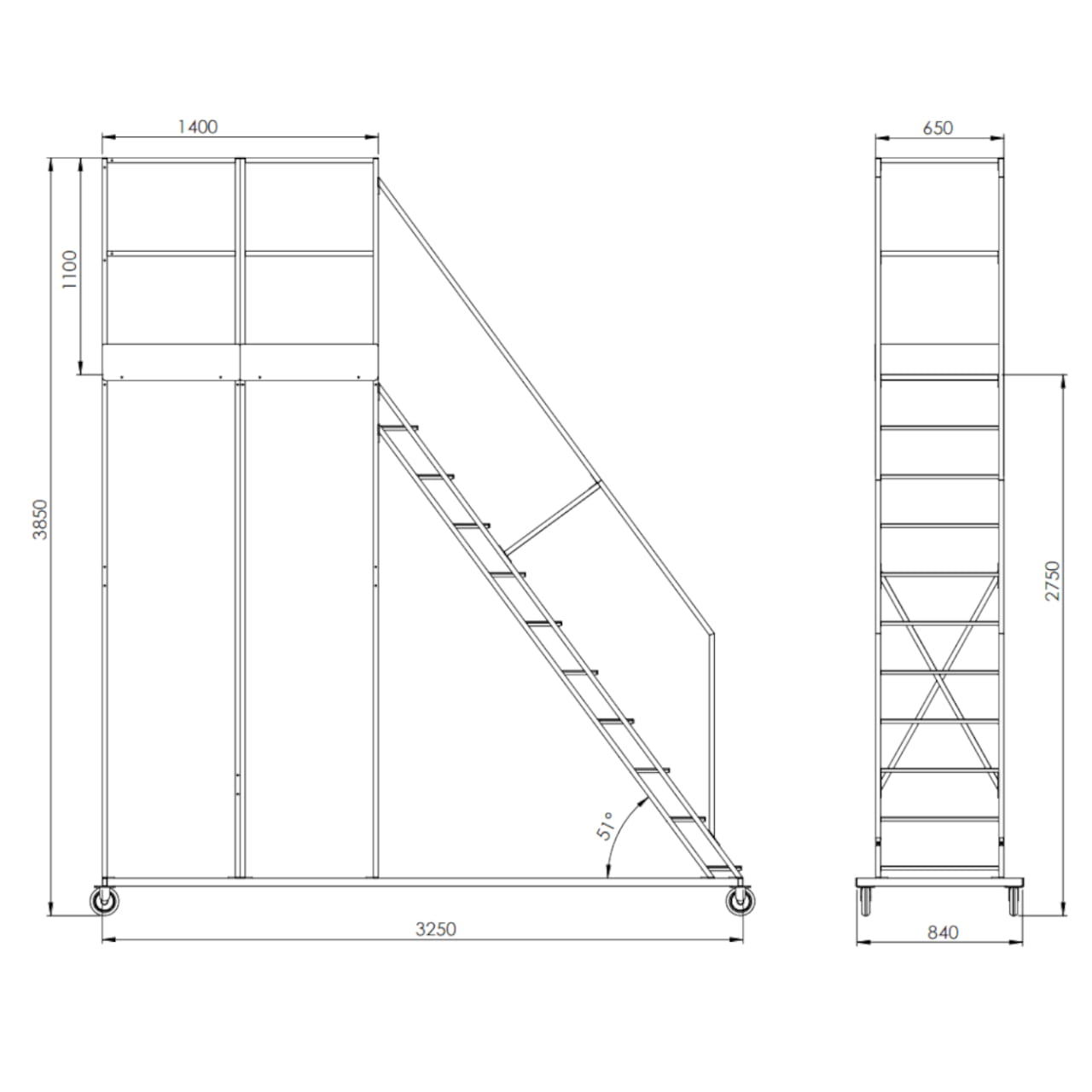 Platforma jezdna z podestem 140 cm DJ2750L140 10+1 2,75m