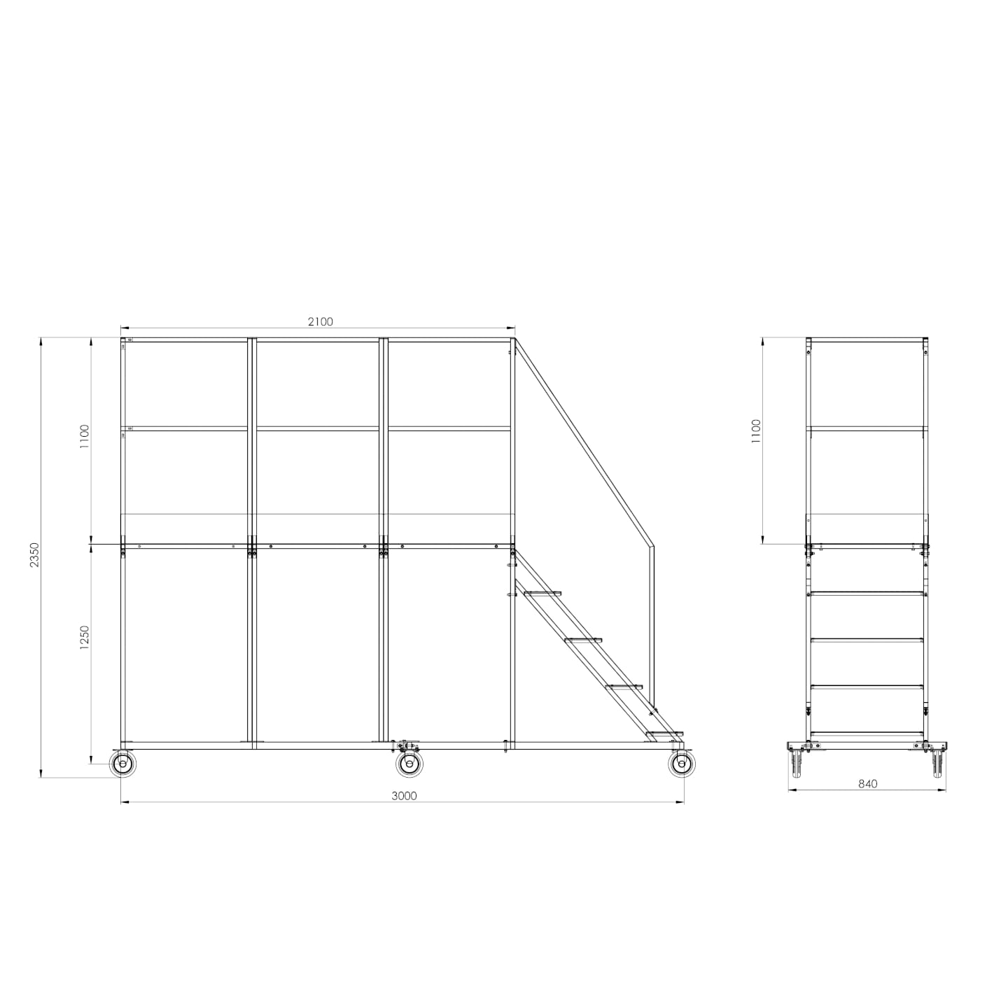 Platforma jezdna z podestem 210 cm DJ1250L210 4+1 1,25m