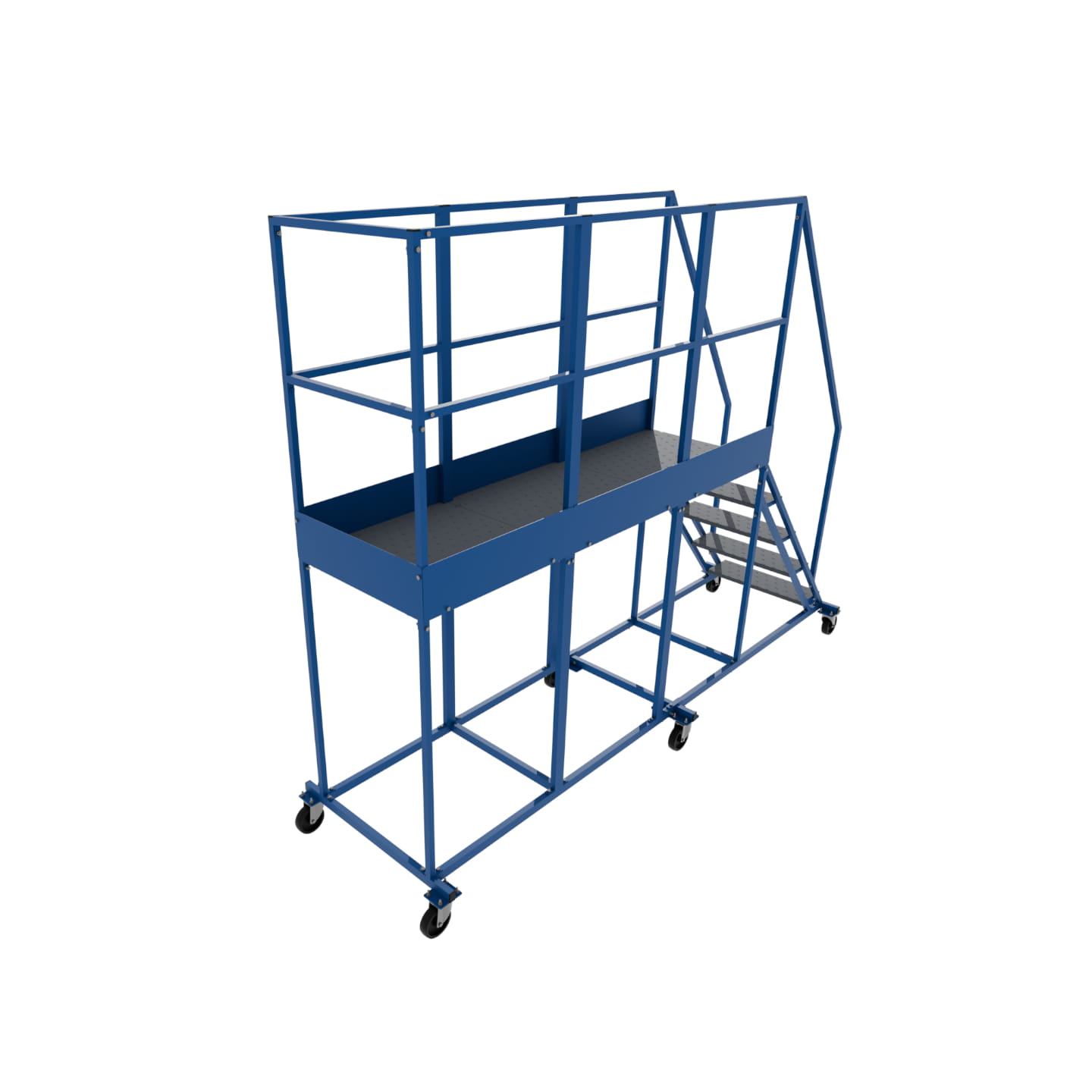 Stabilna i bezpieczna drabina jezdna wykonana z profili stalowych o grubości ścianki 2 mm, przeznaczona do prac magazynowych i warsztatowych. Produkt spełnia normę EN 131, a cały proces produkcji – w tym produkcja kół – odbywa się w Polsce, co gwarantuje najwyższą jakość wykonania.