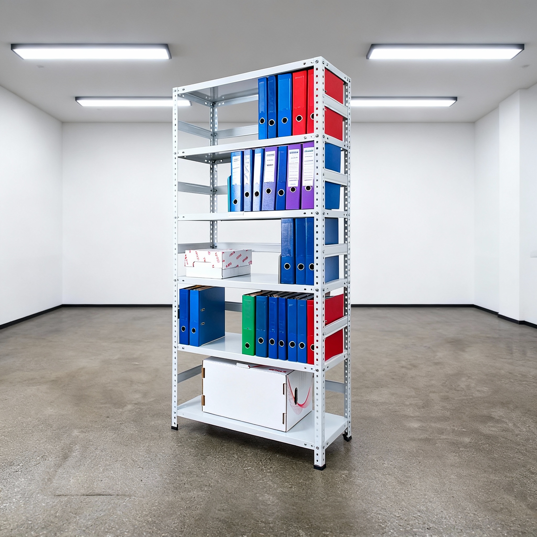 Precyzyjnie Wykonane Półki dla Optymalnej Organizacji: Półki regału wykonane z blach o grubości 1 mm, co łączy lekkość konstrukcji z równoczesnym zachowaniem solidności.