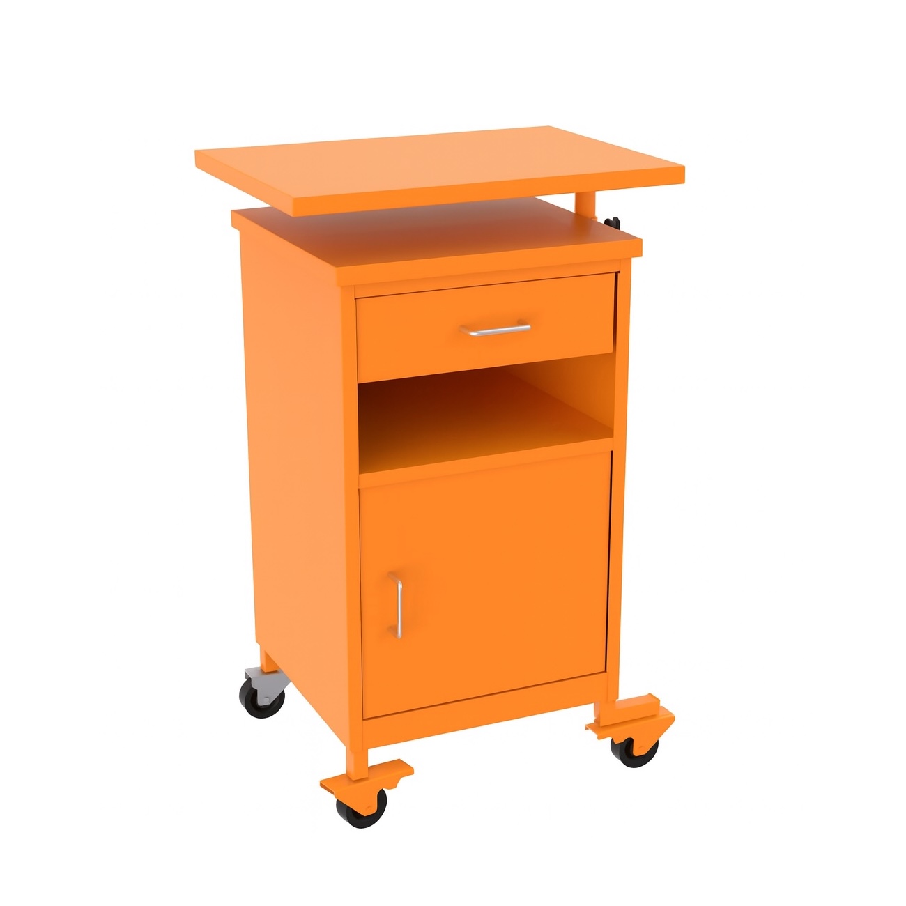 Szafka przyłóżkowa to jeden z elementów wyposażania w placówkach medycznych. Sprawdza się w szpitalach i w przychodniach jako uzupełnienie pokojów dla pacjentów na ich rzeczy osobiste. Wyposażona w szufladę, w drzwiach uchwyt i zatrzask magnetyczny. Szafka symetryczna – szuflada i szafka otwierają się z obu stron. Blaty z powłoką melaminową białą. Kółka umożliwiają łatwe przemieszczanie, a blokada dwóch z nich zabezpiecza przed niepożądanym przemieszczaniem się. Blat z regulowaną wysokością położenia oraz możliwością swobodnego obrotu, wysunięcia i położenia.