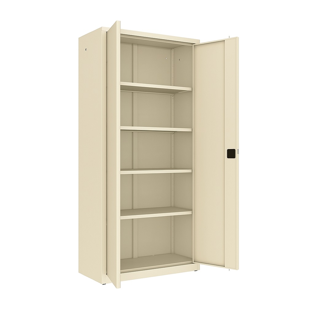 Szafy są wysyłane w całości a wykonane są z blachy stalowej grubości 0,7 mm. Wieniec dolny wyposażony jest w stopki poziomujące. Każda z szaf posiada półki, które można przestawiać co 2,5 cm w zależności od gabarytów przechowywanych elementów, segregatorów czy innych dokumentów. Dopuszczalne obciążenie półek to aż 65 kg. Dodatkowo półki mają możliwość zawieszania teczek A4. Zamek ryglowy zabezpiecza drzwi w dwóch punktach: w dnie oraz w wieńcu górnym, dzięki zastosowaniu systemu ryglowego góra-dół. Każda metalowa szafa na dokumenty RODO z drzwiami skrzydłowymi posiada schowane w drzwiach zawiasy. Dzięki temu meble nie tracą na estetyce i są po prostu ładne.