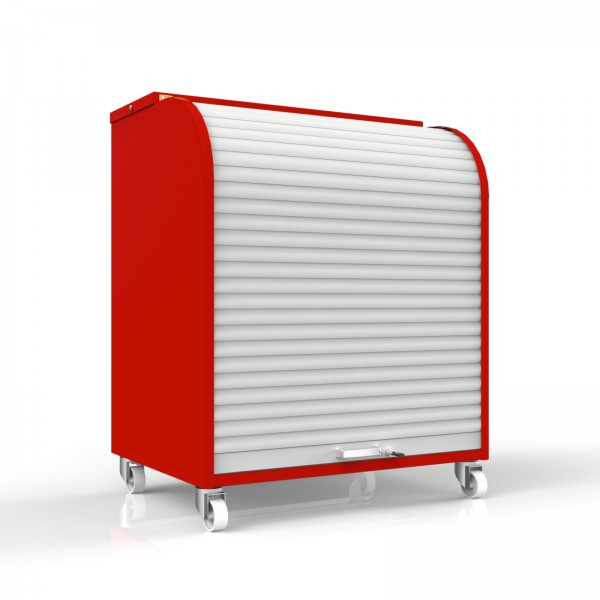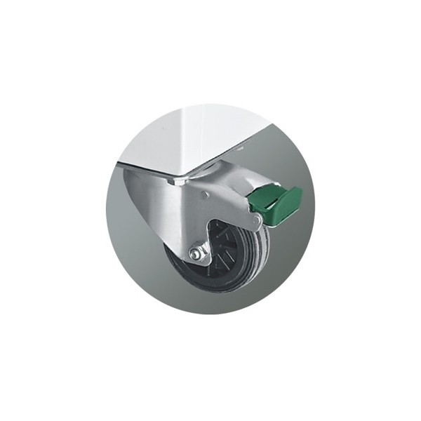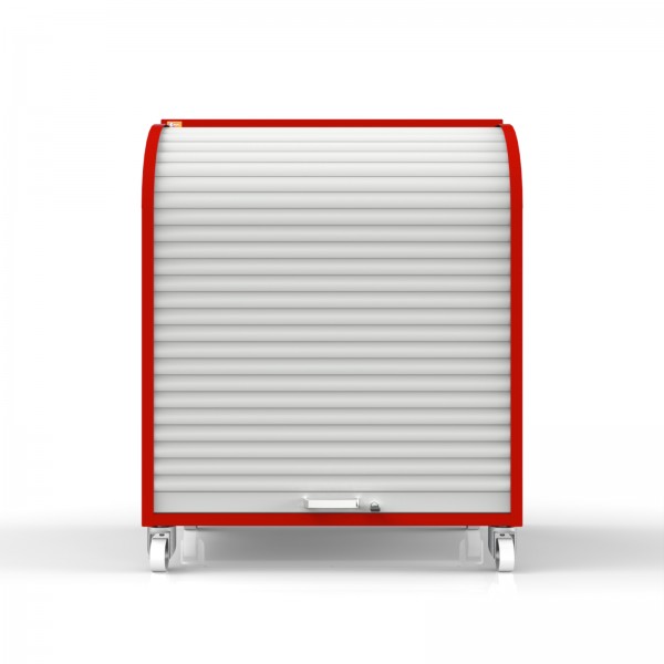 Dla zwiększenia bezpieczeństwa ekspozycji zastosowano roletę wykonaną z aluminium, wyposażoną w mechanizm zamykania z wbudowanym zamkiem i kompletem dwóch kluczy. Ergonomiczny uchwyt umożliwia łatwe i płynne otwieranie i zamykanie rolety. Mobilność konstrukcji zapewniają cztery kółka, z czego dwa wyposażono w funkcję blokady, co gwarantuje stabilność podczas postoju.