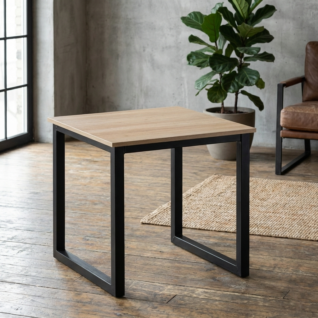 Blat stołu wykonany jest z trwałej płyty meblowej, dostępnej w różnych kolorach, co pozwala łatwo dopasować go do charakteru wnętrza. Do wyboru są różne warianty stelaża – metalowe o nowoczesnym, solidnym charakterze lub drewniane, nadające całości bardziej naturalny wygląd – wszystkie zapewniają stabilność i komfort codziennego użytkowania.