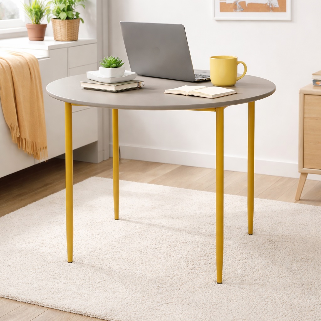 Nowoczesny stół okrągły, idealny do akademika, kawalerki lub niewielkiego mieszkania. Dzięki kompaktowej formie doskonale sprawdzi się jako miejsce do nauki, pracy przy laptopie czy codziennych posiłków. Prosty design z eleganckimi detalami pasuje zarówno do wnętrz nowoczesnych, jak i skandynawskich.