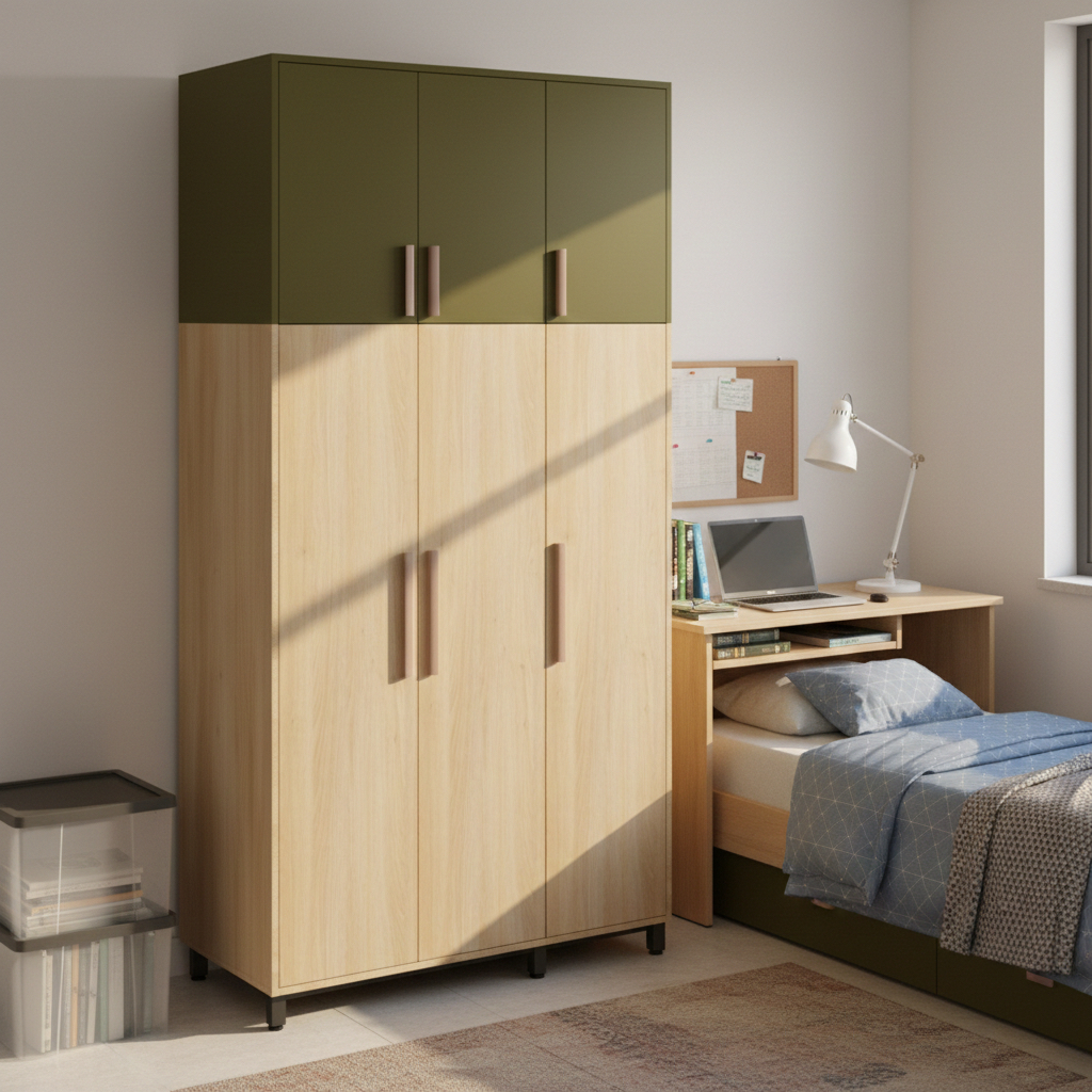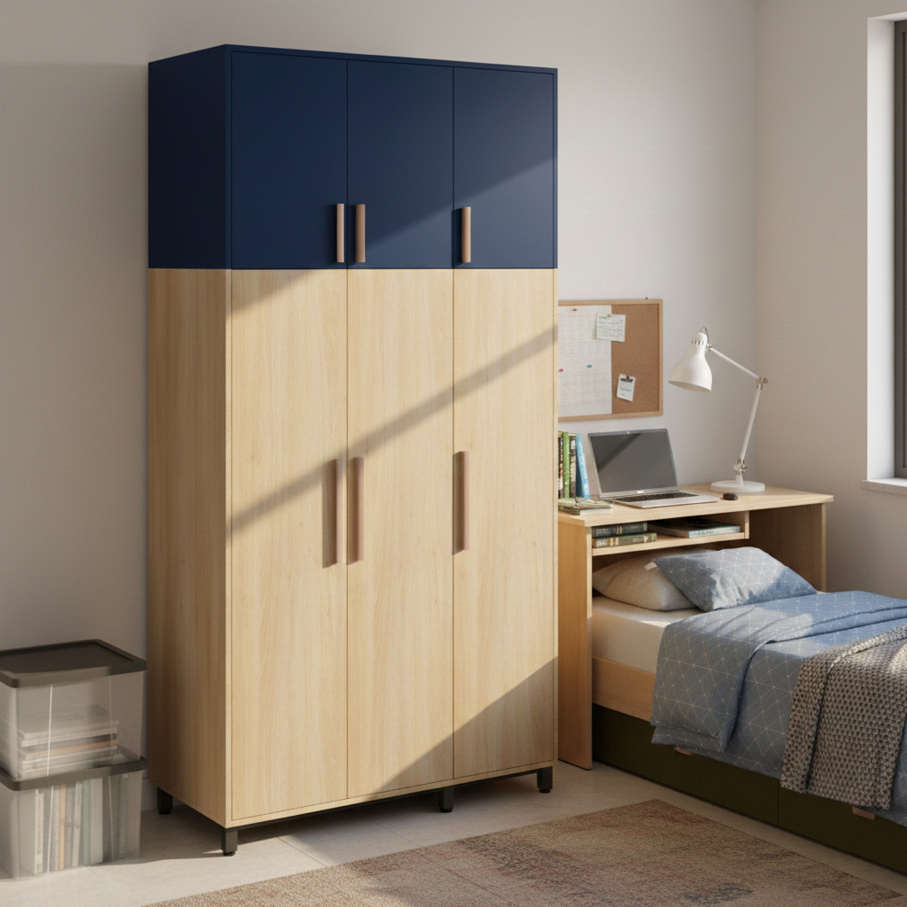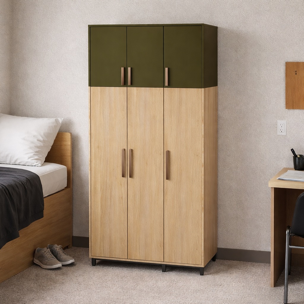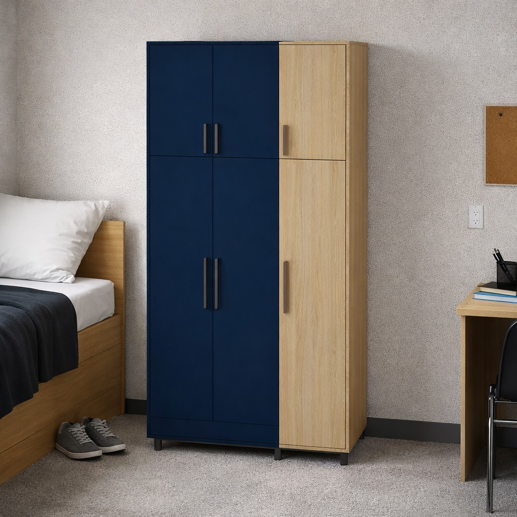 Szafa ubraniowa EMI24 to mebel zaprojektowany z myślą o przechowywaniu odzieży w pokojach studenckich, internatach, mieszkaniach pracowniczych oraz niewielkich sypialniach. Prosta, nowoczesna forma oraz uniwersalna kolorystyka sprawiają, że łatwo dopasować ją do różnych aranżacji wnętrz.