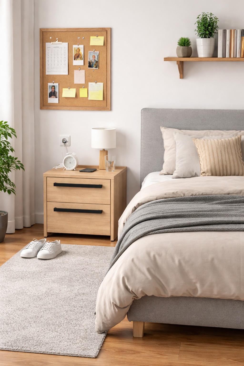 Praktyczne szafki przyłóżkowe zaprojektowane z myślą o pokojach studenckich, akademikach oraz niewielkich mieszkaniach. Dzięki kompaktowej formie zapewniają wygodne miejsce na najpotrzebniejsze rzeczy – książki, telefon, lampkę nocną czy drobne akcesoria codziennego użytku.