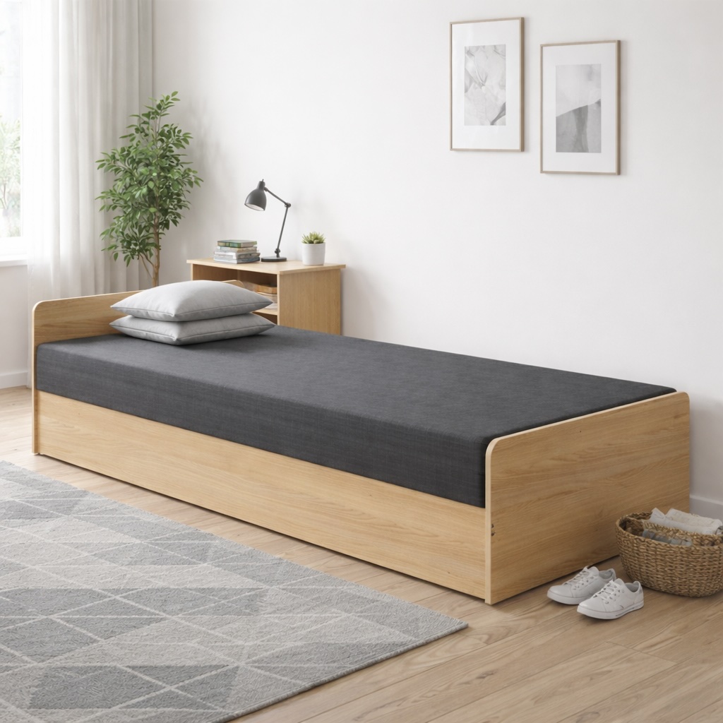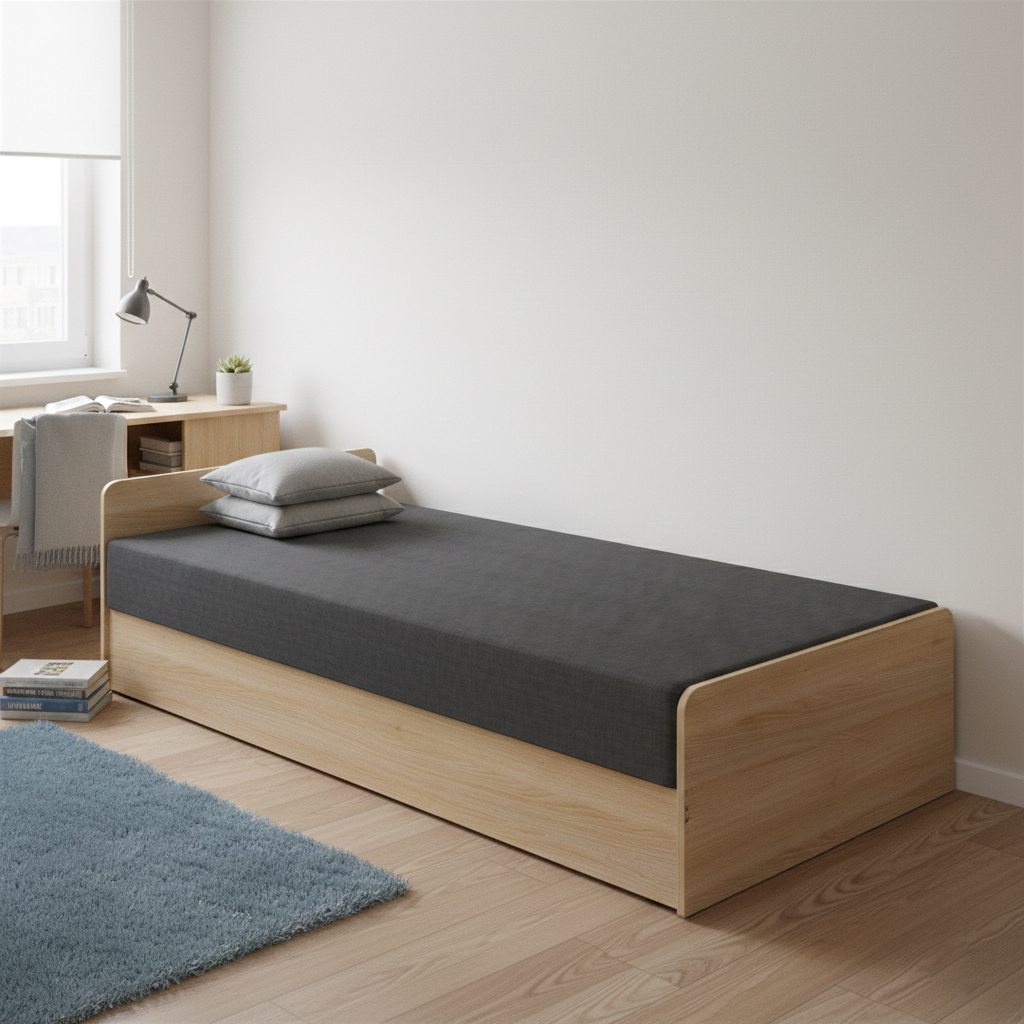 Tapczan zaprojektowany z myślą o pokojach studenckich, akademikach i niewielkich przestrzeniach mieszkalnych. Prosta, solidna konstrukcja oraz stonowana kolorystyka sprawiają, że łóżko dobrze pasuje do nowoczesnych i minimalistycznych wnętrz.