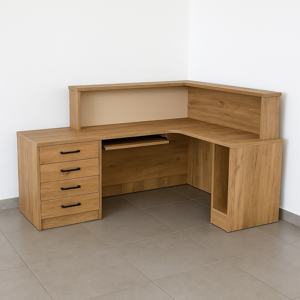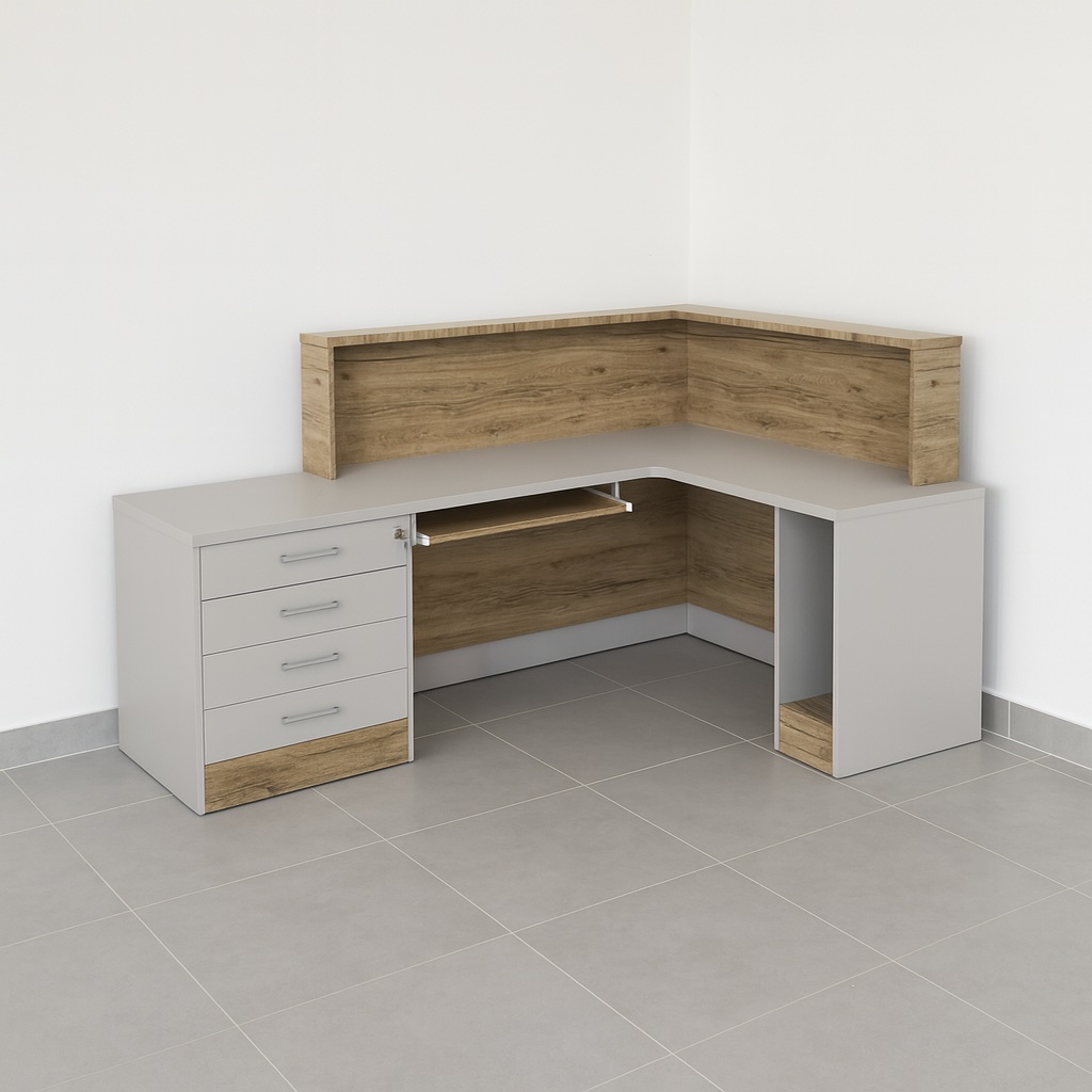 Lada narożna EWA to funkcjonalne i estetyczne rozwiązanie idealne do recepcji, bibliotek, szkół czy punktów obsługi klienta. Dzięki narożnej konstrukcji umożliwia optymalne zagospodarowanie przestrzeni i wygodną organizację stanowiska pracy.