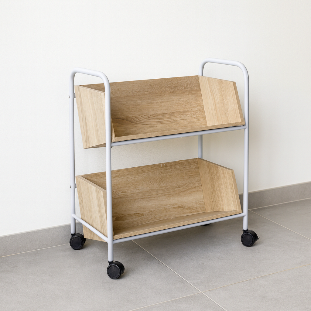 Funkcjonalny i solidny wózek biblioteczny przeznaczony do transportu książek, czasopism oraz innych materiałów drukowanych w bibliotekach, archiwach, szkołach i instytucjach edukacyjnych. Ułatwia codzienną pracę personelu, pozwalając na szybkie i bezpieczne przemieszczanie dużej liczby woluminów.