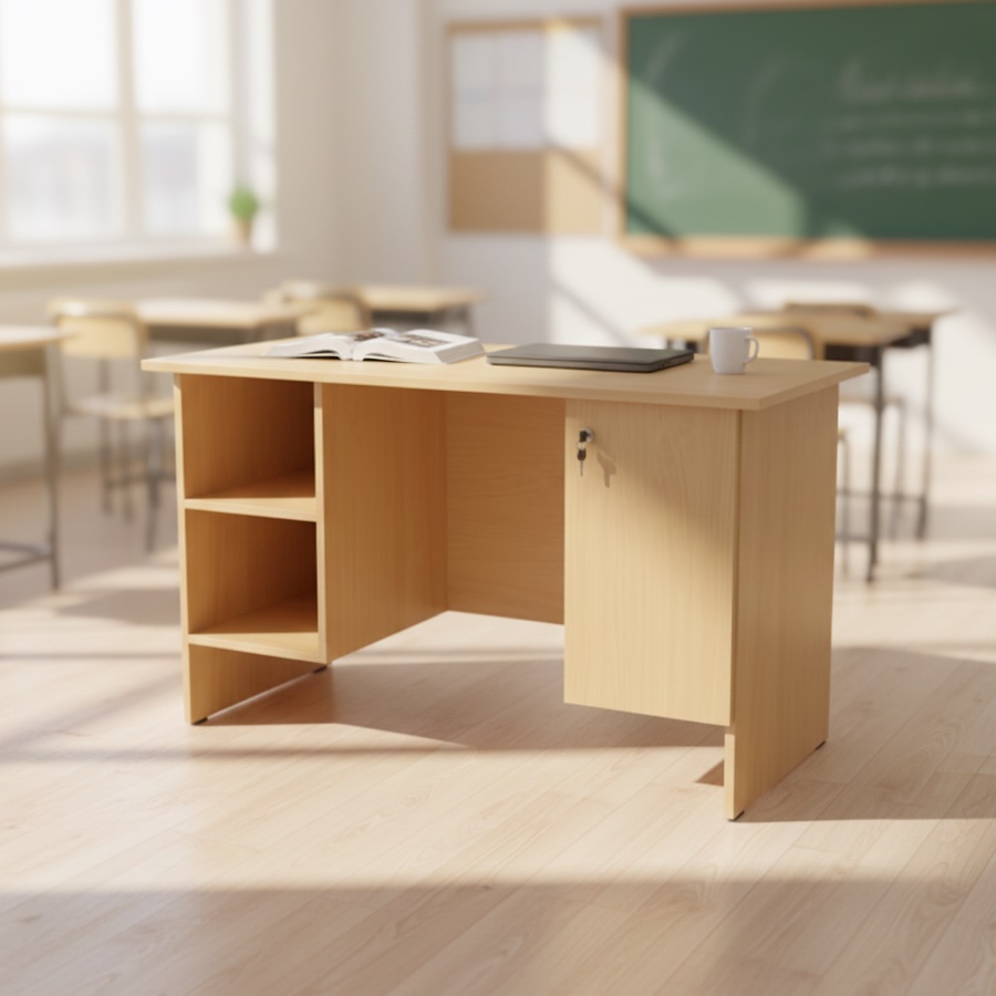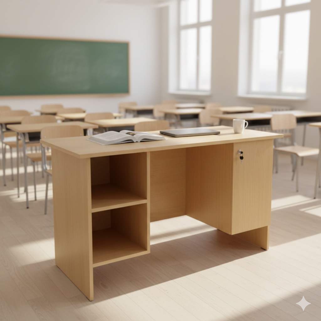 Biurko SB to funkcjonalny i estetycznie zaprojektowany mebel, stworzony z myślą o potrzebach nauczycieli i pracowników placówek edukacyjnych. Doskonale sprawdzi się zarówno w salach lekcyjnych, jak i w pokojach nauczycielskich, gabinetach czy innych pomieszczeniach administracyjnych. Dzięki uniwersalnej formie oraz możliwości doboru kolorystyki – zarówno jednolitej, jak i łączonej (np. blat w innym kolorze niż stelaż) – biurko z łatwością dopasowuje się do różnorodnych aranżacji wnętrz. Przemyślana konstrukcja zapewnia wygodną przestrzeń roboczą oraz funkcjonalne miejsce do przechowywania materiałów dydaktycznych, dokumentów i rzeczy osobistych. To idealne rozwiązanie dla osób, które cenią sobie porządek, ergonomię i trwałość wyposażenia.