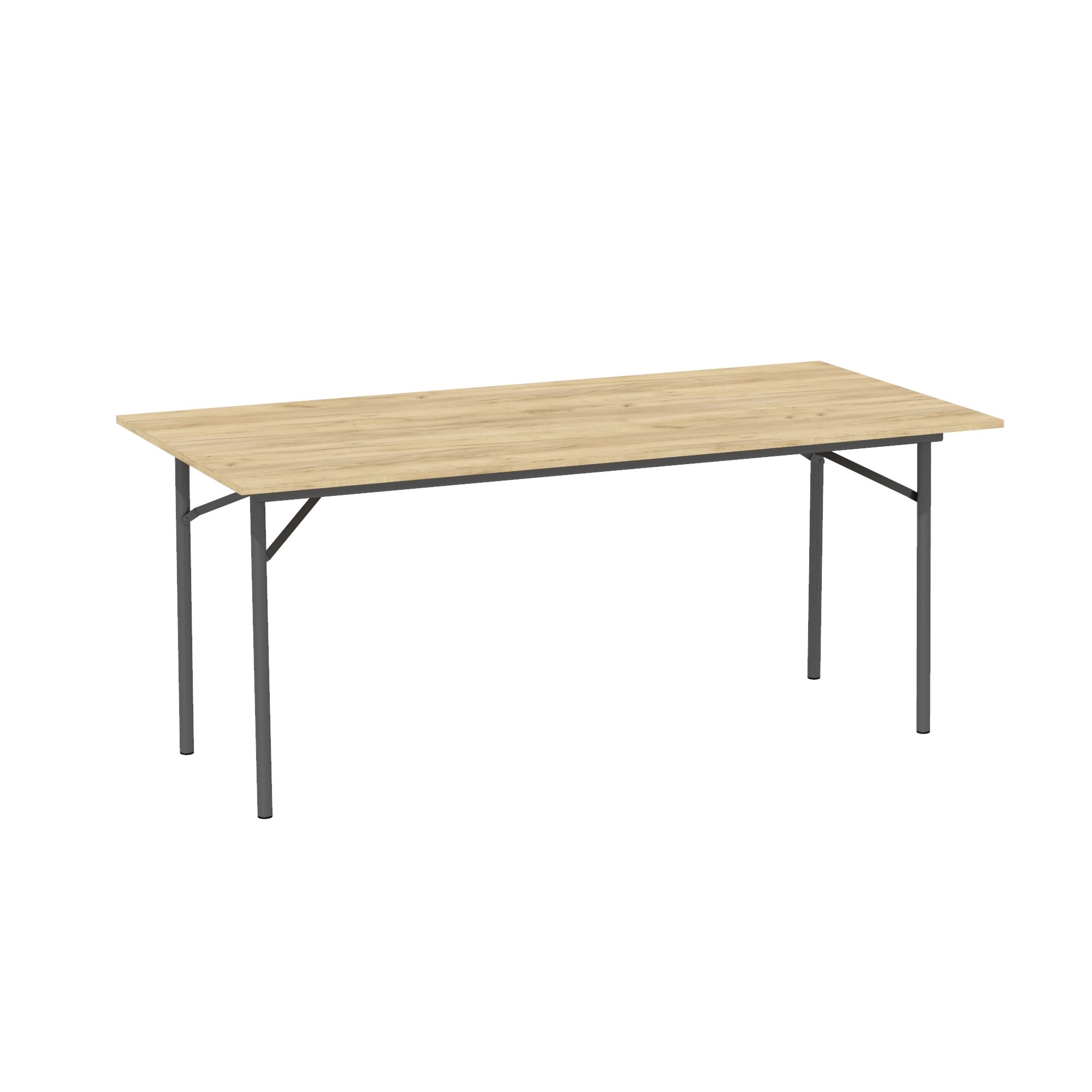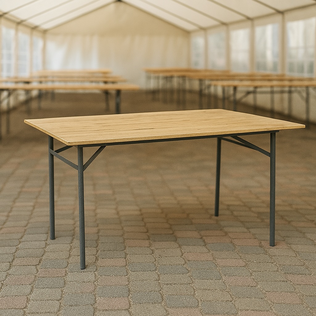 Składany stół biurowy to praktyczne i funkcjonalne rozwiązanie do biur, sal konferencyjnych i szkoleniowych. Posiada prostokątny blat z trwałej płyty laminowanej oraz stabilny stalowy stelaż w kształcie litery T. Mechanizm składania nóg umożliwia szybkie i łatwe złożenie stołu, co ułatwia jego przechowywanie i transport. Idealny do przestrzeni, w których liczy się elastyczność i oszczędność miejsca.