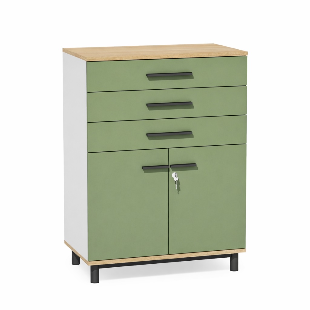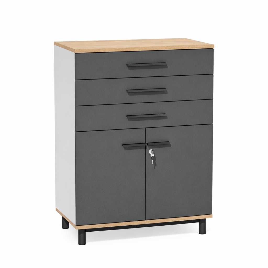 Wyposażona w kilka pojemnych szuflad, zapewnia wygodny dostęp do zawartości i umożliwia logiczne uporządkowanie sprzętu według potrzeb. Solidna konstrukcja sprawdza się w codziennym, intensywnym użytkowaniu szkolnym.